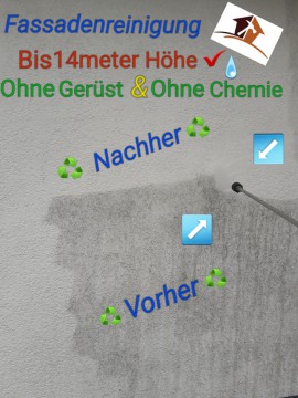 Früher oder später setzen sich Moose, Algen, Pilze, Flechten, Grünbelag, Spinnweben und Efeu in Ihrer Fassade fest. Eine professionelle Reinigung der Fassade schont die Umwelt, die Fassade und Ihren Geldbeutel – denn ein Neuanstrich ist deutlich teurer und aufwendiger! Fassadenimprägnierung machen wir ohne Gerüst somit gibt es keine lange Wartezeiten ,denn wir arbeiten mit Teleskoplanzen und  bis zu 14 Meter ohne Gerüst mit einer Spezial Reinigungsmaschine ganz ohne Chemie. Sie können uns nicht vergleichen, aber Sie können uns kostenlos testen. Nach unserer Arbeit sehen Ihr Dach, Fassade und Hof wieder wie neu aus.